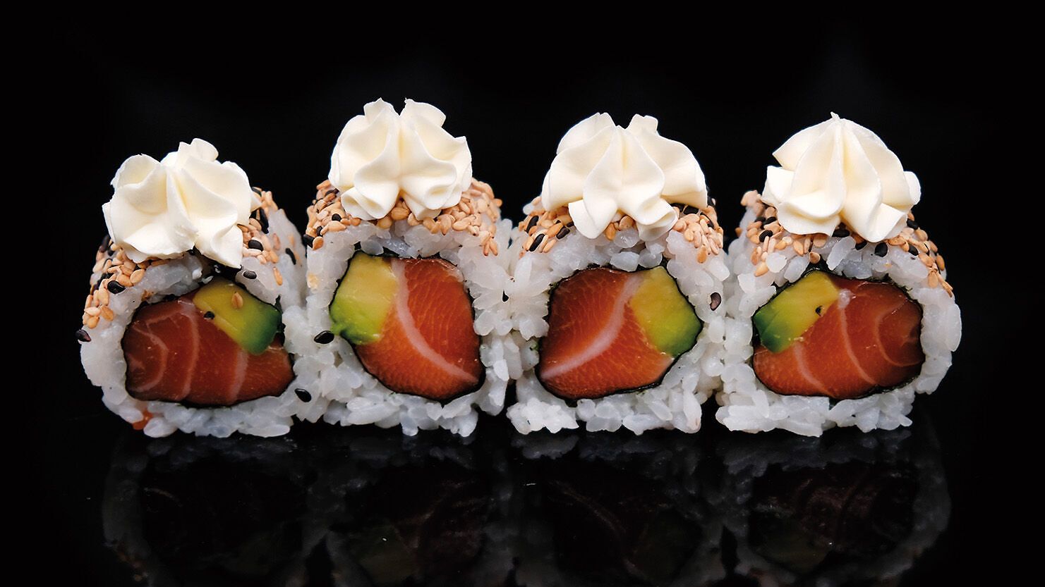 Riso, salmone crudo, avocado, philadelphia e sesamo